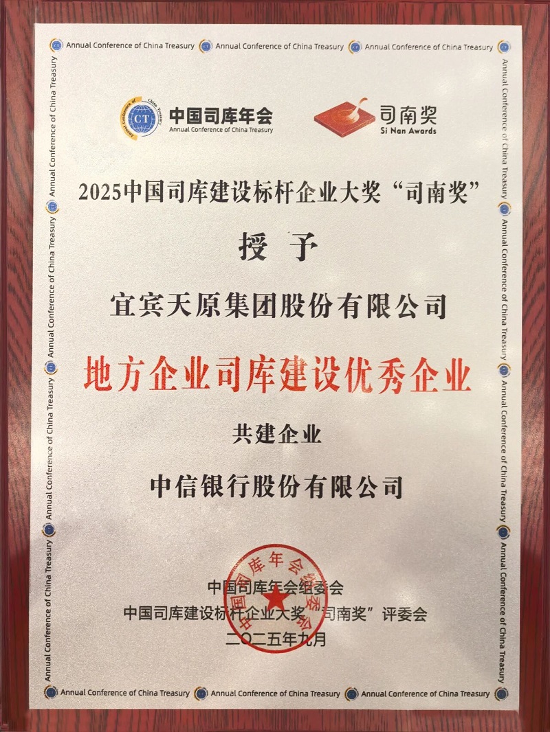 近日,2025中國司庫建設(shè)標(biāo)桿企業(yè)大獎“司南獎”評選獲獎名單公示,天原集團榮獲2025中國司庫建設(shè)標(biāo)桿企業(yè)大獎“司南獎”——“地方企業(yè)司庫建設(shè)優(yōu)秀企業(yè)” 。