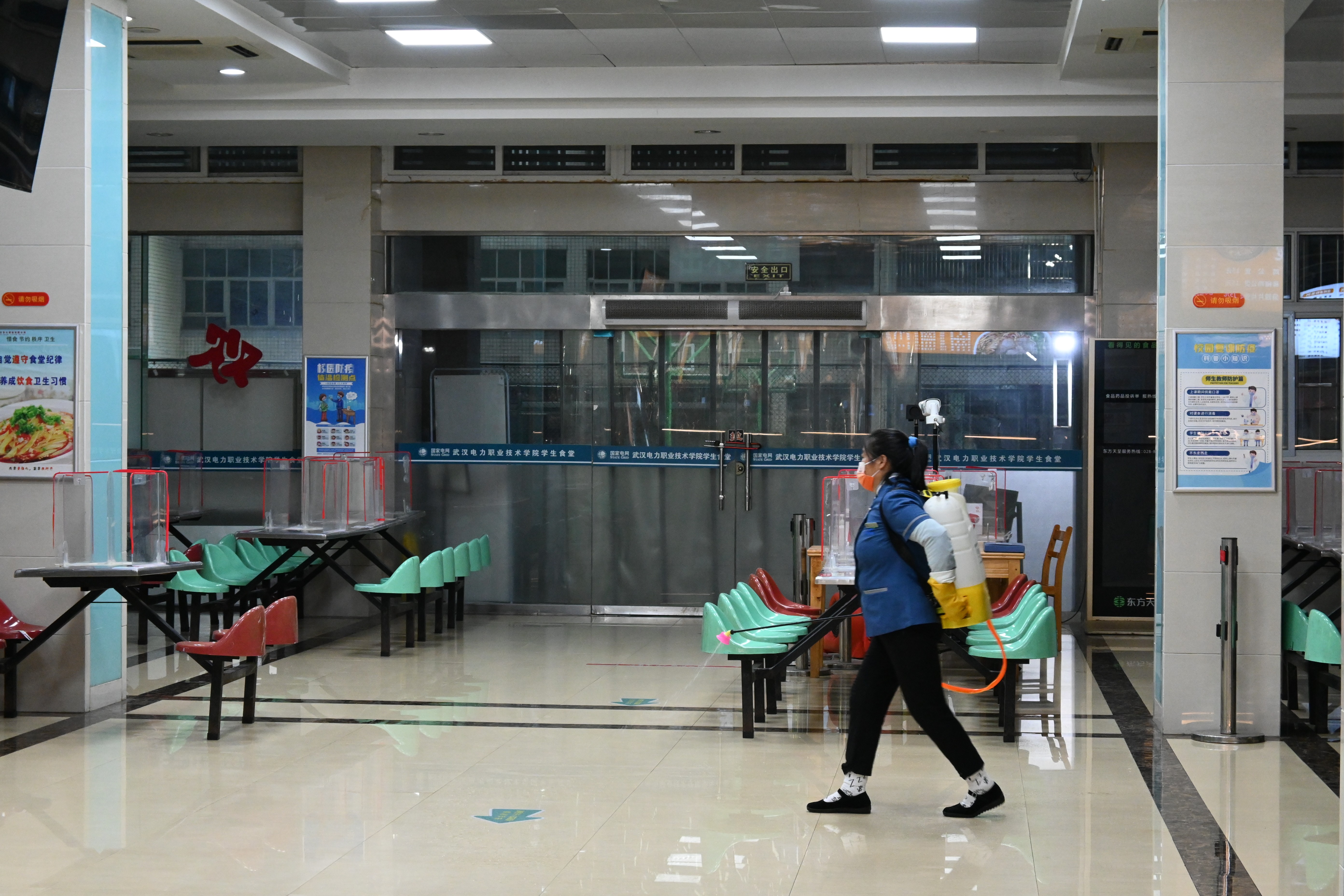 圖為:食堂員工每日進(jìn)行晚間消殺