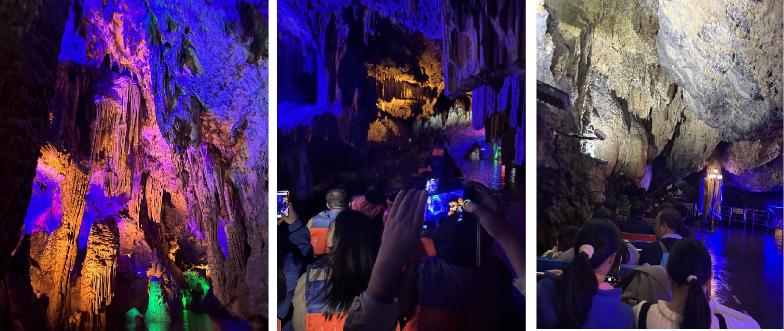 午后,大家乘車前往【隱水洞】,通過步行、乘船、乘坐小火車等多種方式,全方位體驗了這場地下世界的奇妙探險。在幽暗的洞穴中,大家相互扶持,共同克服難關(guān),這份經(jīng)歷無疑加深了彼此間的信任與依賴。